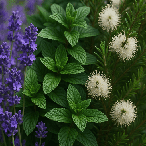 Eterična olja poprove mete, sivke in čajevca skupaj tvorijo funkcionalno aromatično harmonijo. Čajevec podpira čistost kože, sivka pomirja občutljivost, poprova meta pa daje osveževalni učinek, ki ga koža potrebuje.